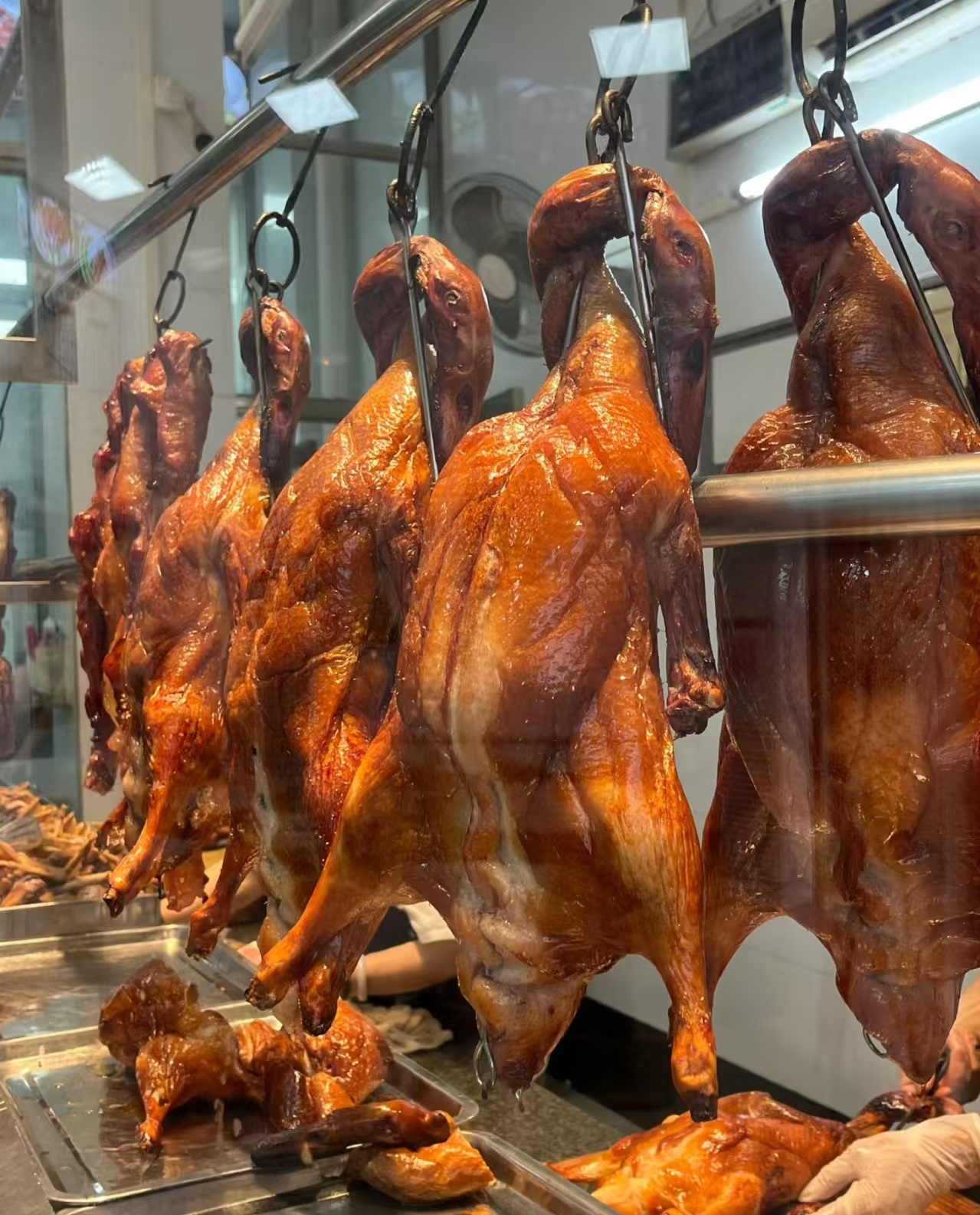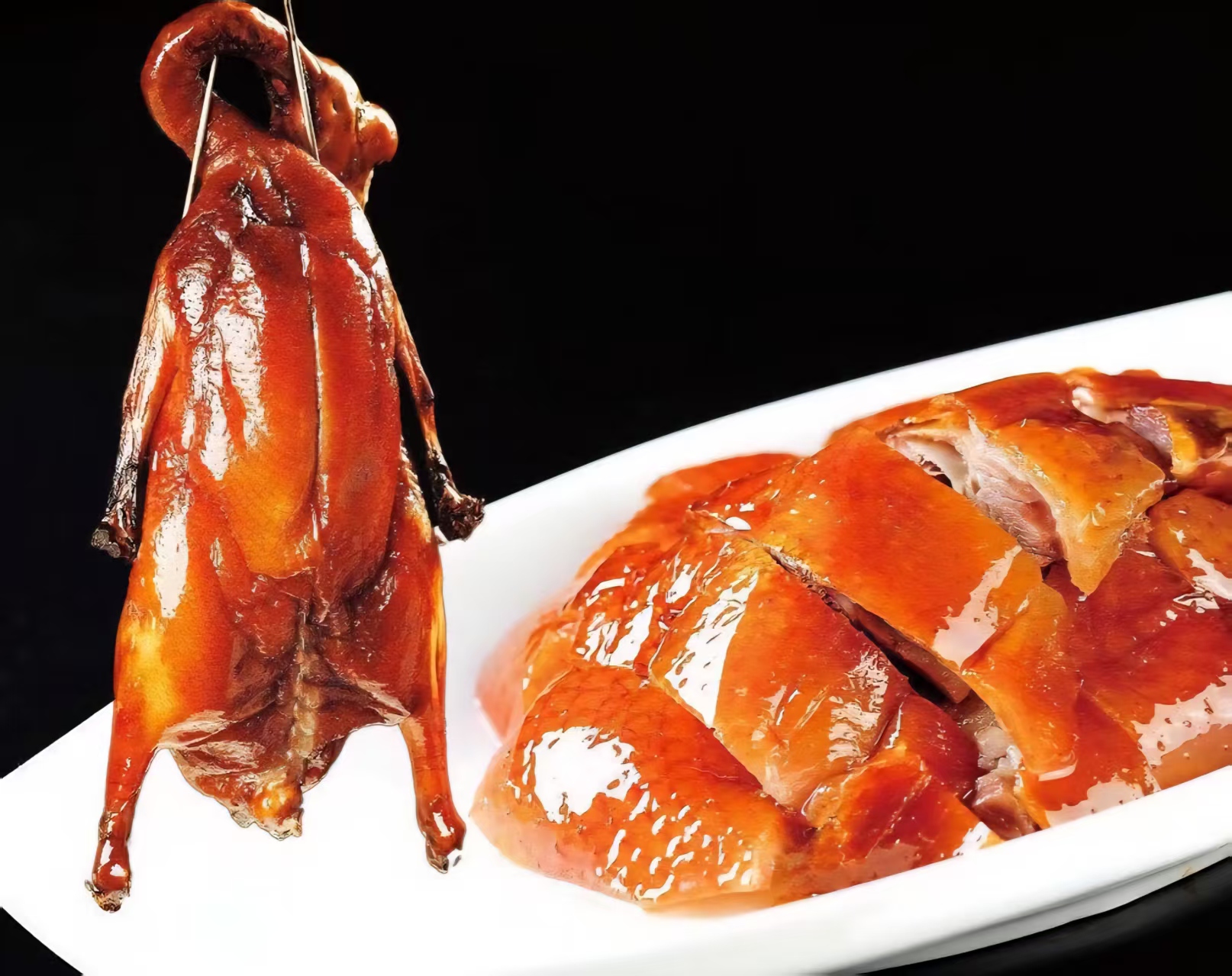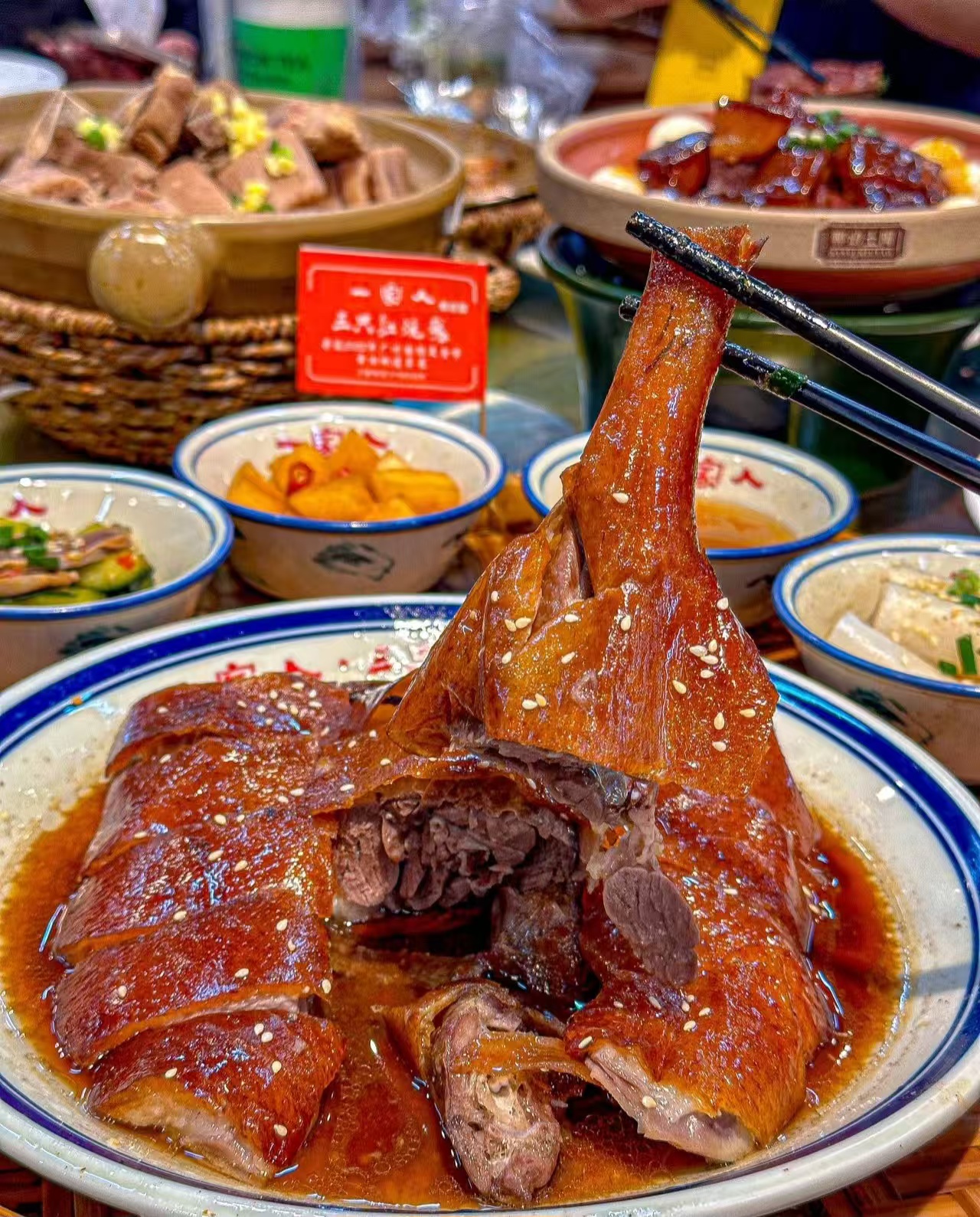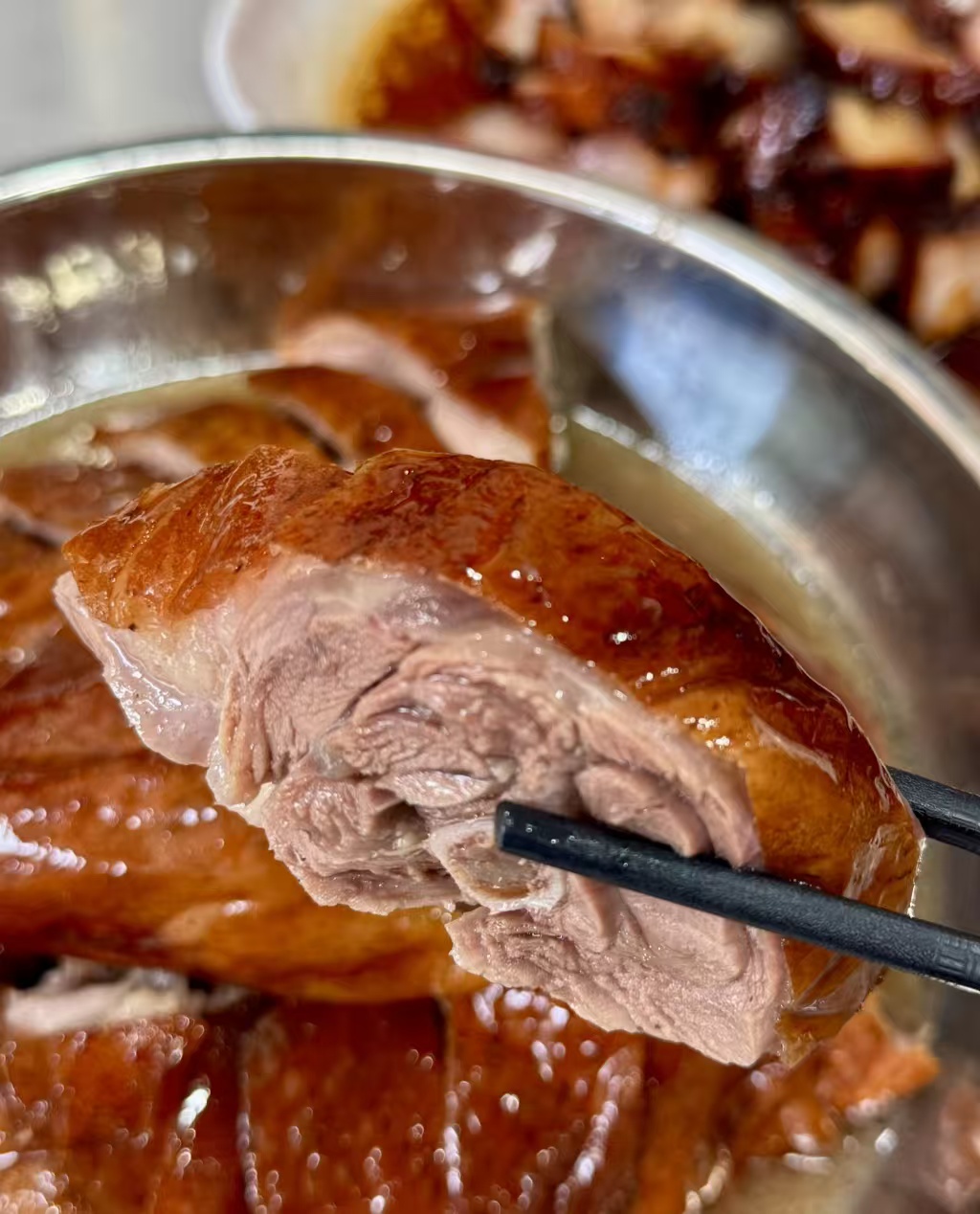 Guangdong Roast Goose is a classic in Cantonese cuisine, known for its crispy skin, tender meat, golden color, and irresistible aroma 🤤. The goose is traditionally marinated and then slow-cooked over charcoal, giving it a deep, smoky flavor 🌟. Served with a special sauce, every bite is a true delight 🍽️.